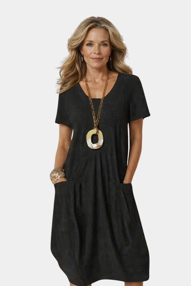 Imagine a gentle day, juggling appointments and moments for yourself, in this dress that effortlessly keeps pace with you. It moves with every gesture, offering a fluid and natural feel.